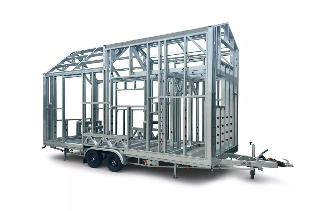 Ľahká oceľová konštrukcia (systém BAUCORE) predstavuje technologickú špičku pre stavbu Tiny Houses na podvozku. Vďaka unikátnemu pomeru pevnosti a hmotnosti získate bezpečný a odolný domov, ktorý je pripravený na častý transport a dynamické zaťaženie.