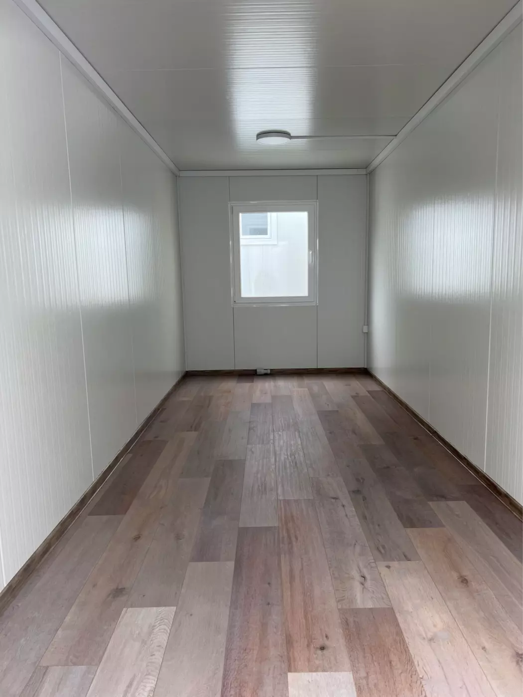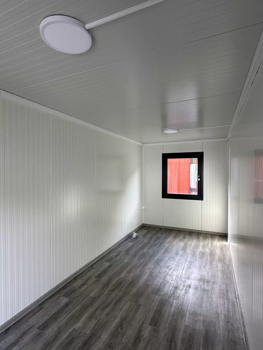 Štandardom sú biele (RAL9002) sendvičové panely (50mm) a biele (RAL9002) rámy, ktoré však môžeme nastriekať do rôznych farebných odtieňov. Kontajner má kompletnú elektroinštaláciu realizovanú našími certifikovanými elektrikármi. Modul obsahuje 1 plastové okno (dvojsklo) na úzkej strane a plastové / kovové dvere na opačnej úzkej strane.
