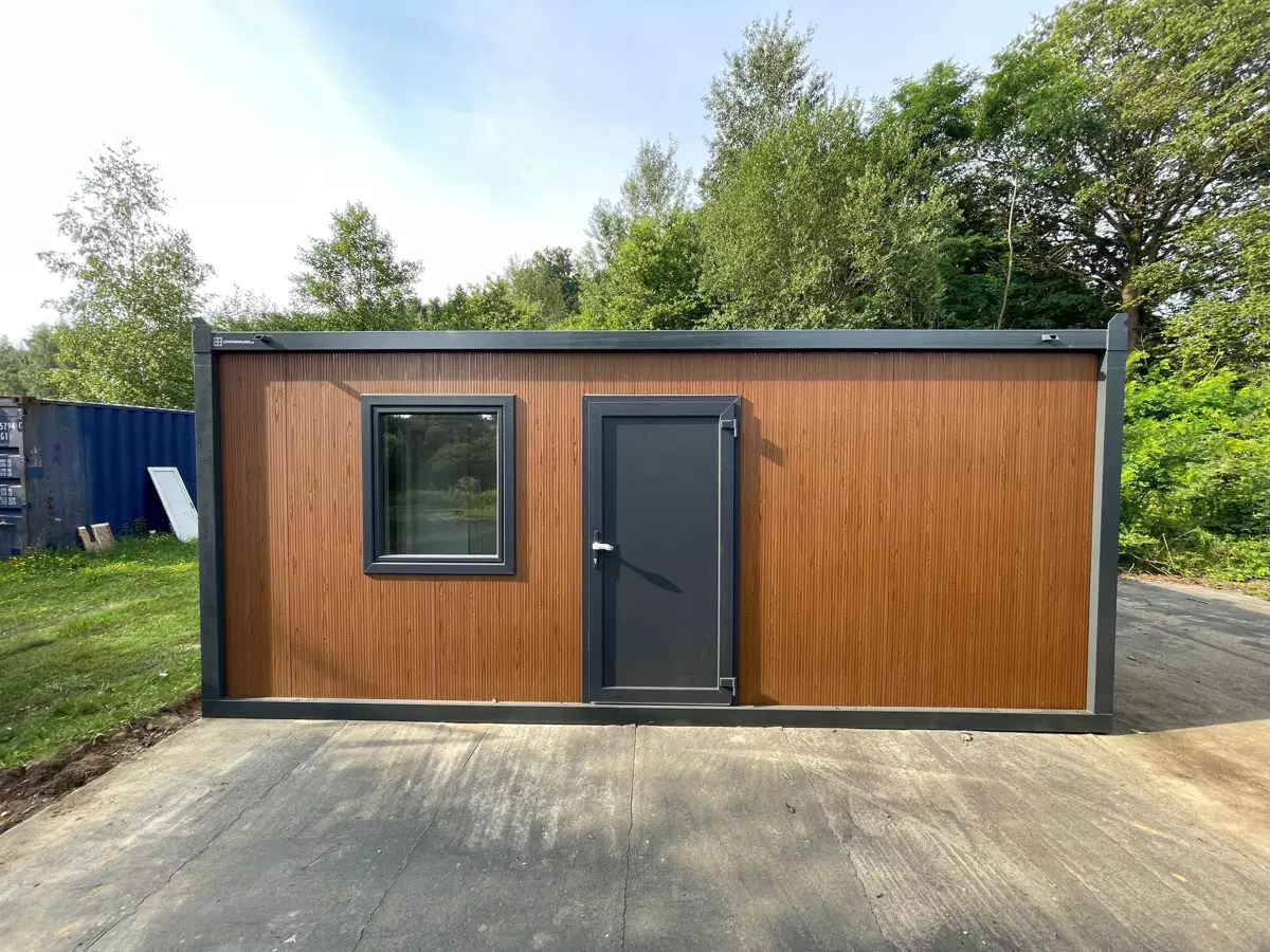 Obytný kontajner s plne vybavenou sanitárnou miestnosťou.